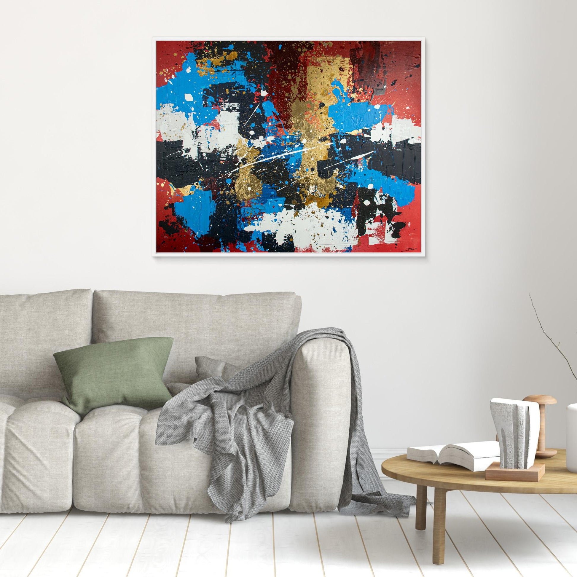 The artwork is printed on semi-matte, 330g cotton canvas using UV printing technology for water and fade resistance, ensuring vivid and balanced colors. Each piece is stretched on an 18mm pine stretcher frame and if selected framed with a handcrafted floating frame, made of Italian wood.